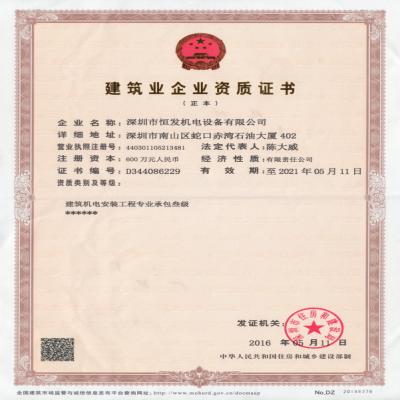 住建局機(jī)電安裝三級(jí)資質(zhì)許可證